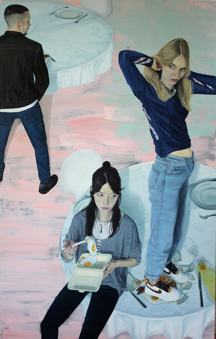 But while he pokes fun at the stuffier tropes of figurative painting, Tristan has also shown his work at two of the UK’s most historic galleries this year. The Cynic, a portrait of his friend Josephine, was selected for the prestigious BP Portrait Award show at The National Portrait Gallery, and he presented work at the Royal Academy’s annual Summer Exhibition. That would be impressive for an artist of any age, but important side note: Tristan was born in 1990. NBD.