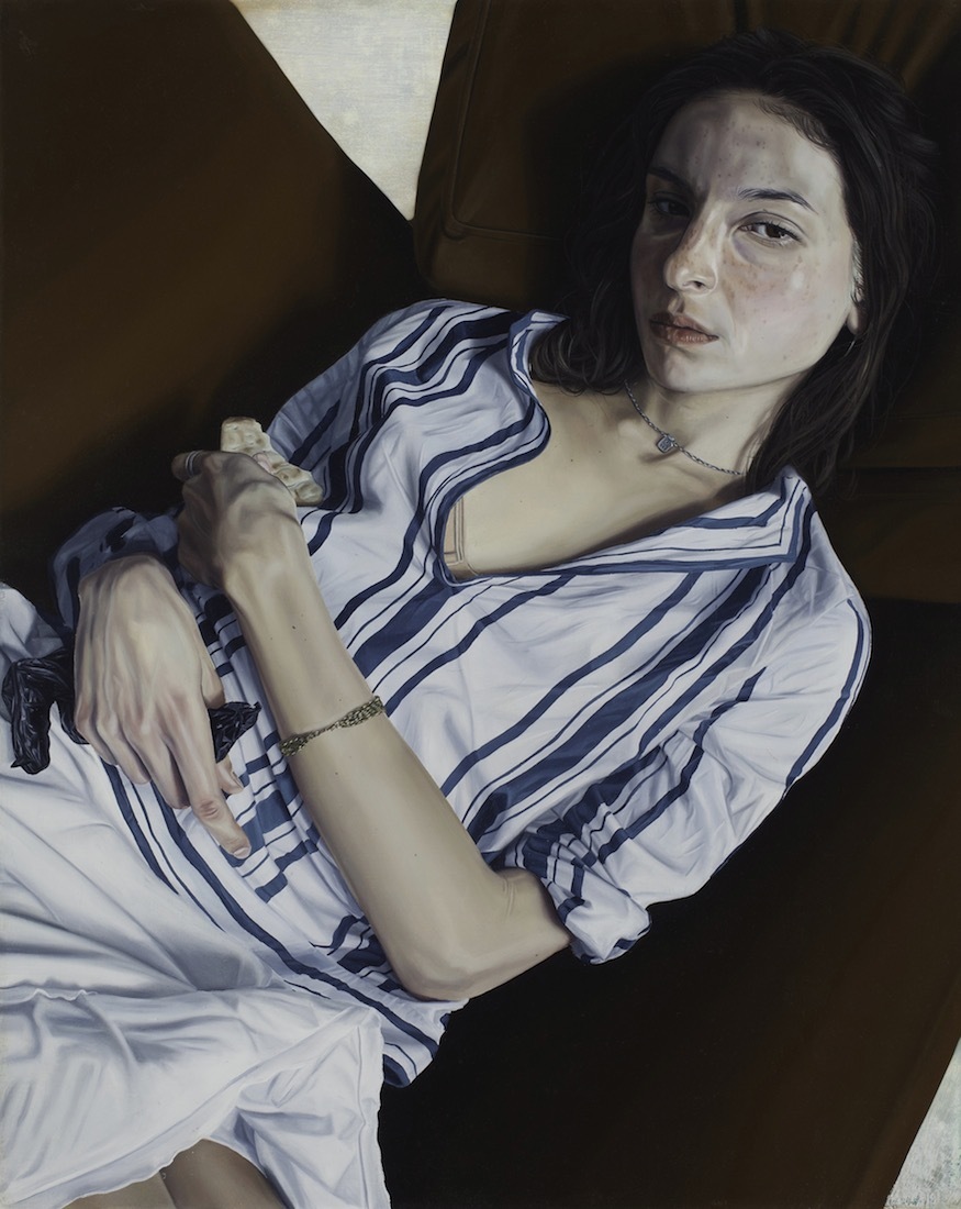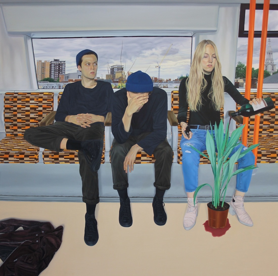 You can immediately relate to the subjects of Tristan Pigott’s paintings. His portraits have a snapshot-ish quality, like scenes you might see on Instagram – of friends sitting on the subway (actually the Tube – Tristan lives in London), putting on makeup still half-dressed, or eating breakfast and looking slightly worse for wear. He captures awkward in-between moments that feel both everyday and surreal.