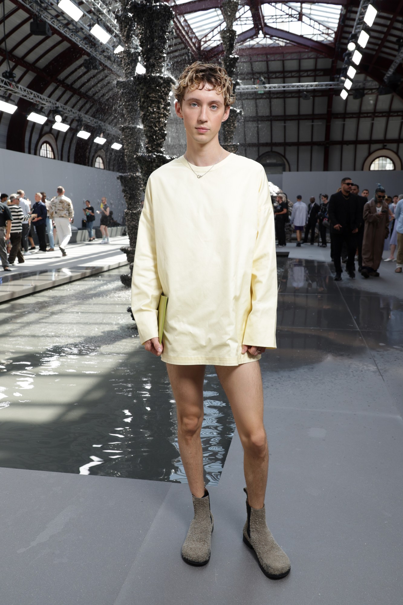 If the SS24 menswear shows are any indication, the look for next summer is a pair of thigh-skimming short shorts. But with Troye and Loewe creative director Jonathan Anderson always one step ahead and ready to push the boat out, at the Loewe show in Paris, Troye wore nothing but an oversized yellow tee from the AW23 collection — one just long enough that we’re left questioning whether he was wearing anything underneath. The look, naturally, went viral on Gay Twitter, with users saying it was giving both Princess Diana’s revenge dress (is it?) and Dobby the house-elf (fair). Either way, it’s a slay.