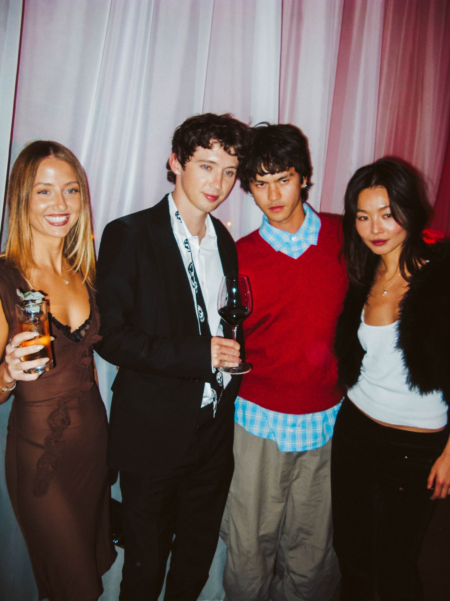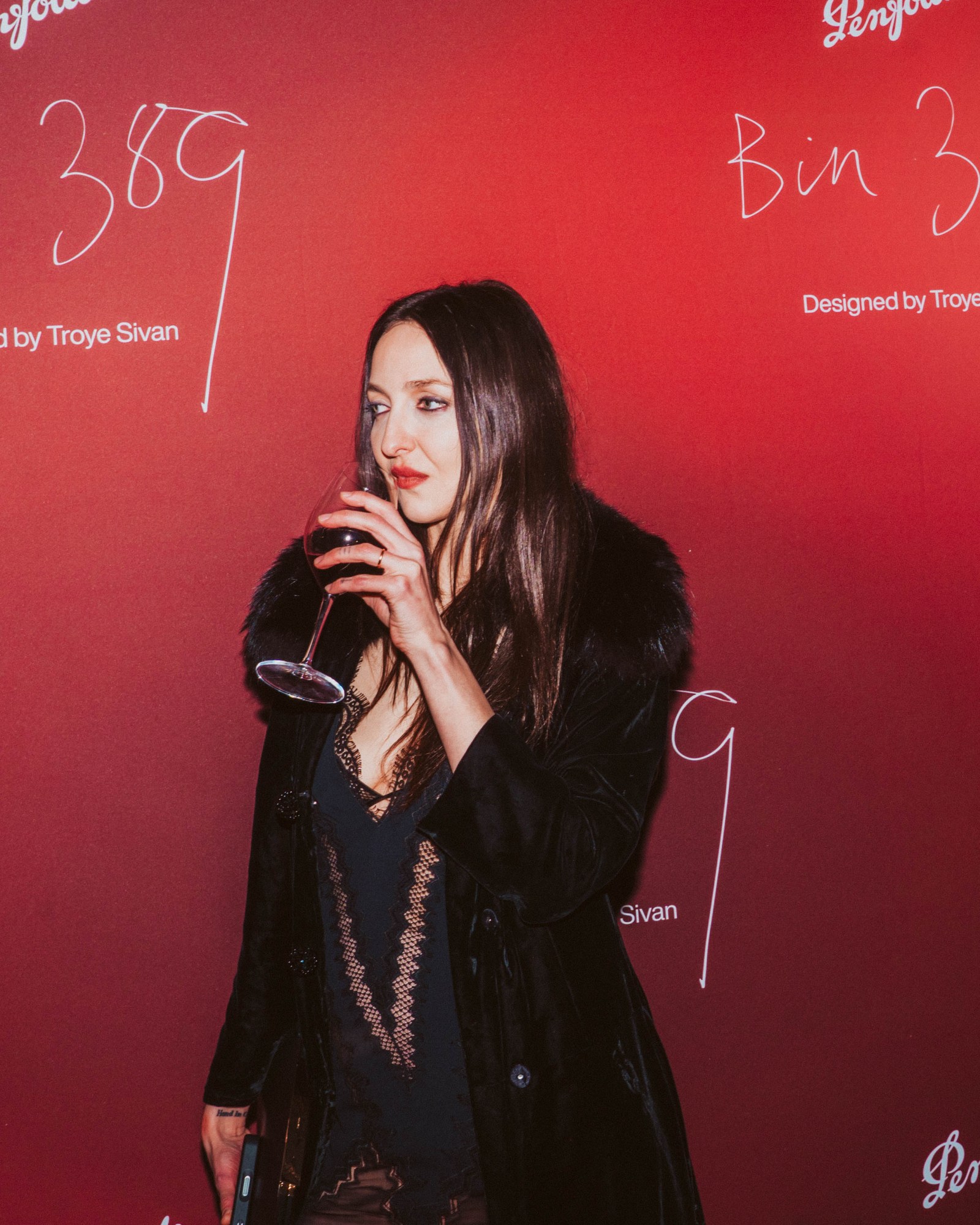 Rather than a traditional brand launch, the evening felt more like stepping into Troye’s group chat. A who’s-who of his creative orbit, close friends and fashion it-girls—including Gabbriette, Tish Weinstock, and Lila Moss—attended, bringing a fun and slightly chaotic atmosphere. It was the unveiling of Bin 389 Designed by Troye Sivan, a limited-edition release of one of Penfolds’ most beloved wines.