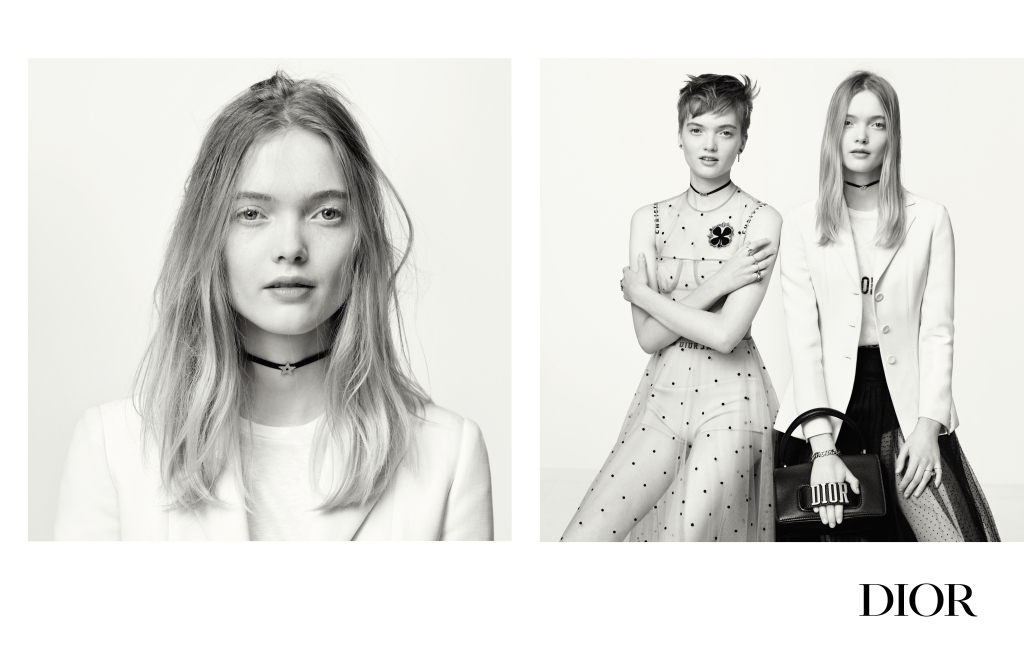 The new ads star idiosyncratic twin sisters Ruth and May Bell in pieces that best embody the spring/summer collection’s youthful, fluid interpretation of femininity. Aspiring Royal Air Force pilot (and i-D cover star) Ruth is for the most part her ladylike sister’s counterpart, but their roles are not rigidly defined. In one of the most striking black-and-white shots, Ruth wears a full-length sheer tulle gown while May tries out a crisp white blazer.