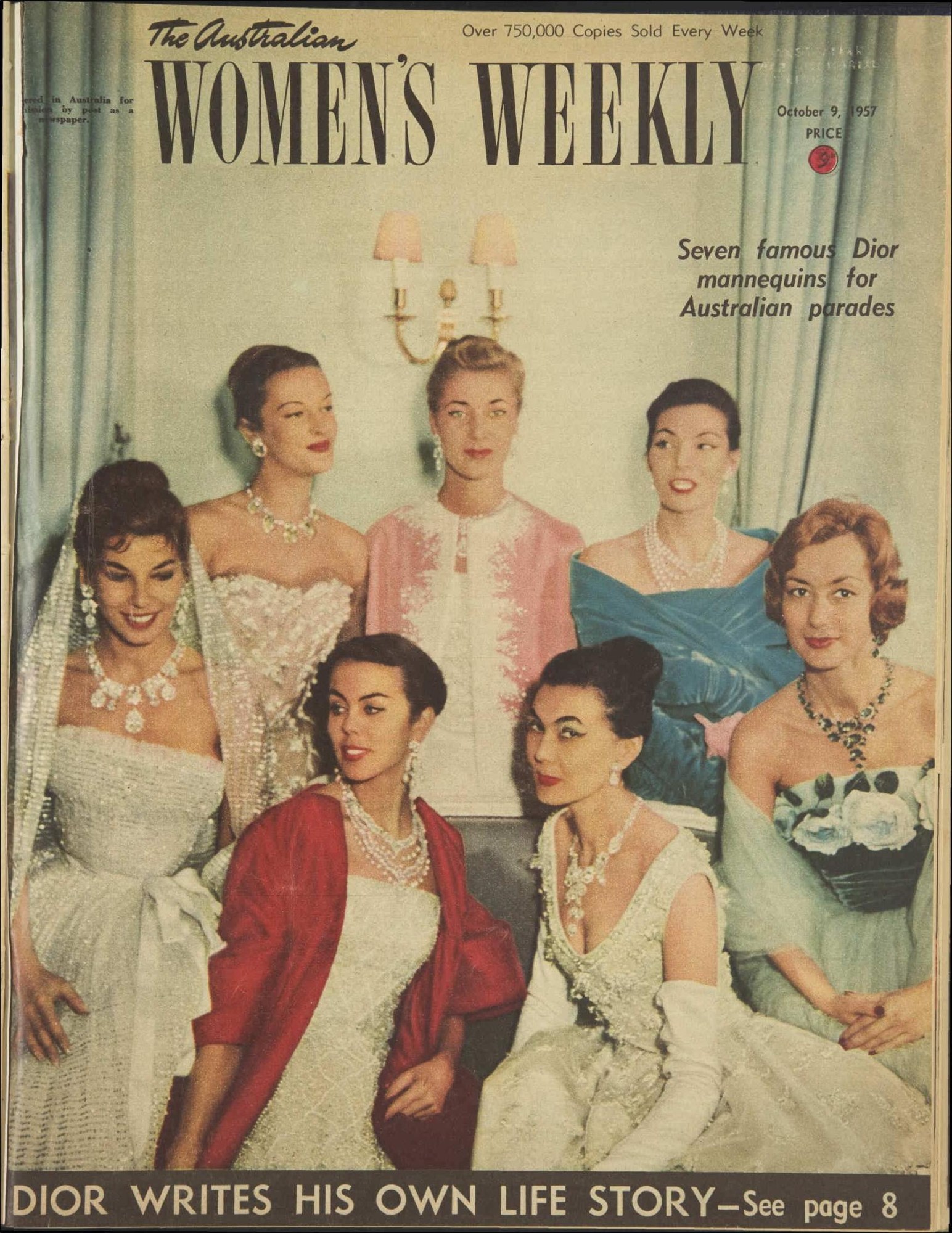 His style took off globally and in 1947, just one year into Dior’s life, a number of outfits were transported to Australia for a Woman’s Weekly fashion parade. The pieces were also shot on the cover of the magazine as the new look and silhouette was embraced by the generation. The following year, David Jones department store flew a 50-piece collection of original Dior couture to Australia for a dedicated fashion parade, along with a number of its well-known house models to wear the designs. It was the first time a complete Dior collection had been shown outside of Paris and a huge event in the fashion industry at the time.