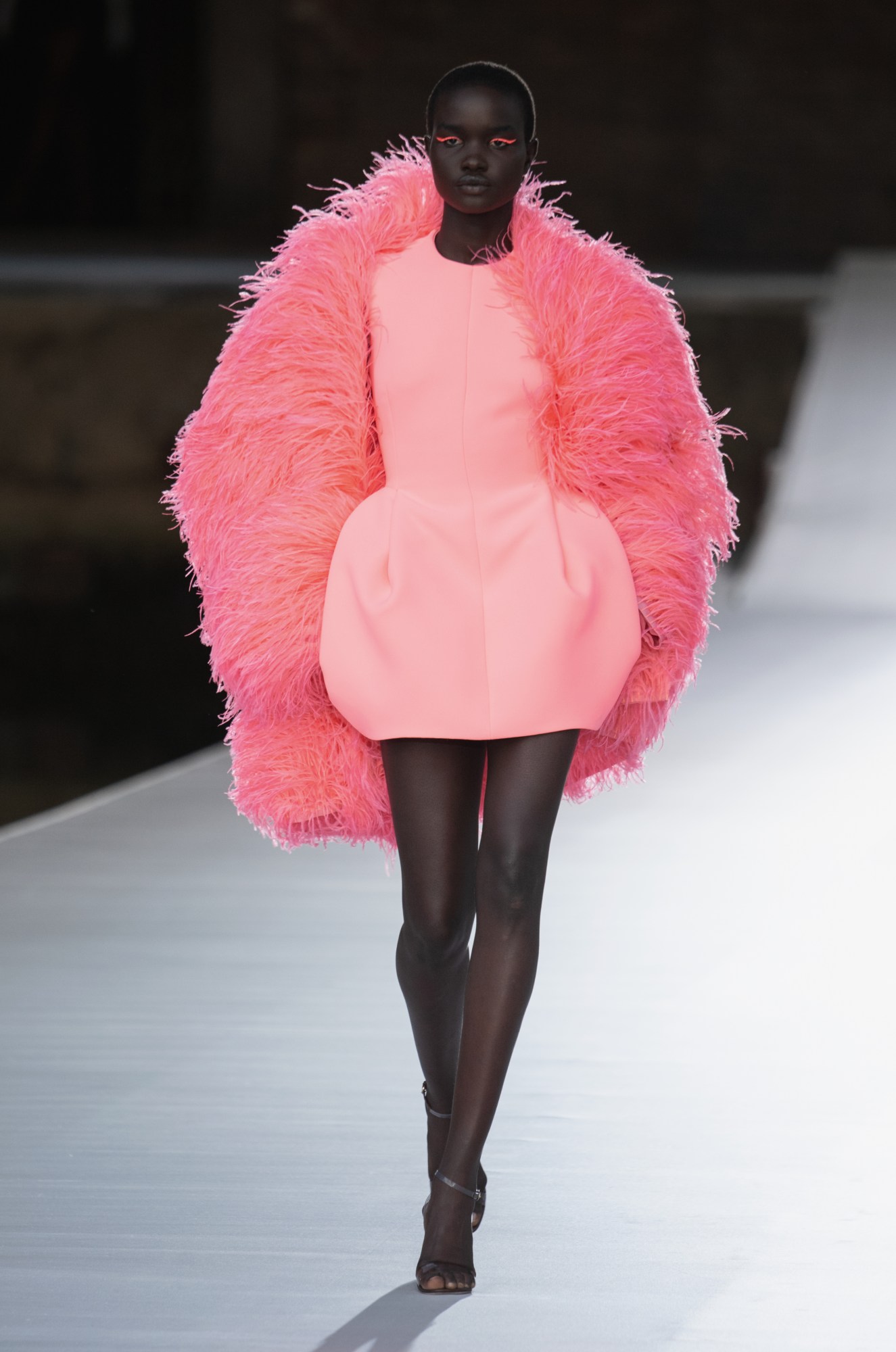 Of course, this being Valentino, among the most unabashedly couture of couture houses, this sense of uncompromising rigour and romance trickled throughout the show’s 84 looks. What’s perhaps most impressive, though, is the range that was on show — the counterposing of unbridled fashion fantasy with pieces that felt totally tangible. Yes, there were sweetheart-neckline balllgowns with exploded sleeves in marigold, fuschia and chartreuse, but there were also impeccably cut double-faced cashmere coats and high-waisted wool crepe trousers to boot. It’s a testament to the eminently contemporary spirit of Pierpaolo Piccioli’s Valentino — as much as it reveres the history and heritage of its craft, it’s firmly anchored in the world as we know it today.