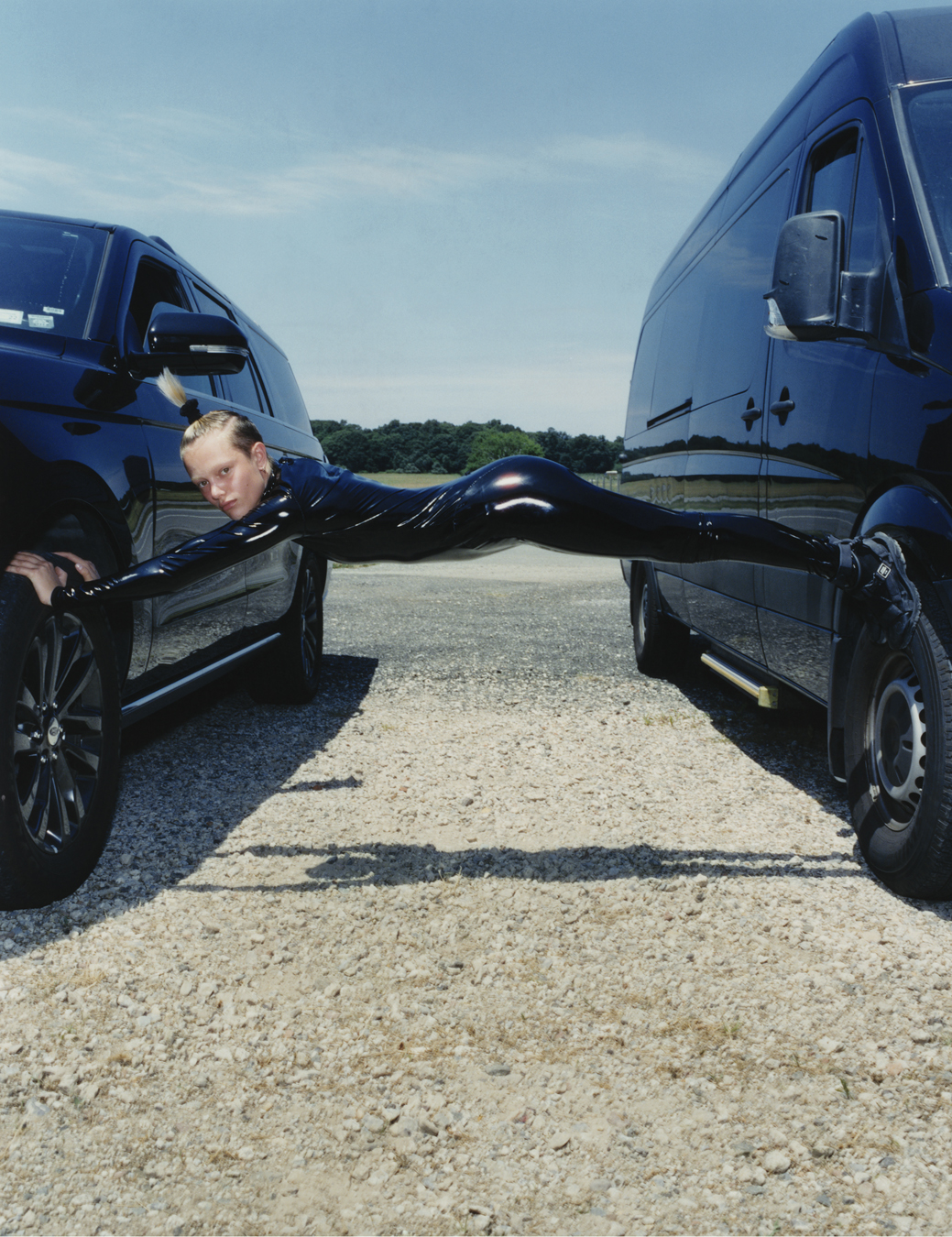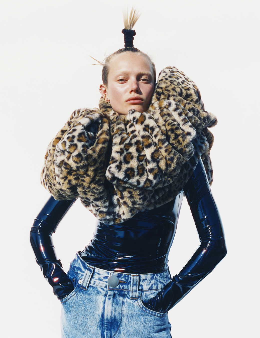 It is worth underscoring that discussing Vaquera’s work in terms of ‘fantasy’ and ‘fiction’ is not to say it is unconcerned with reality. Rather, it’s committed to manifesting realities that are more exciting than the ones we typically occupy. To some, “a world where you can have a huge leopard scrunchie around your neck, and you’re in platform Vans, stomping along to a pop song mixed with a country song and an EDM track” – as Emma Wyman, the brand’s stylist of seven years, puts it – may seem fanciful. For Vaquera, and those within its orbit, however, bringing that vision to life is simply an honest, earnest attempt to fulfil the wishes of “people who want to transform themselves,” Bryn says. “People who are eager to subvert fashion norms,” adds Laura Spence, Vaquera’s current senior designer.