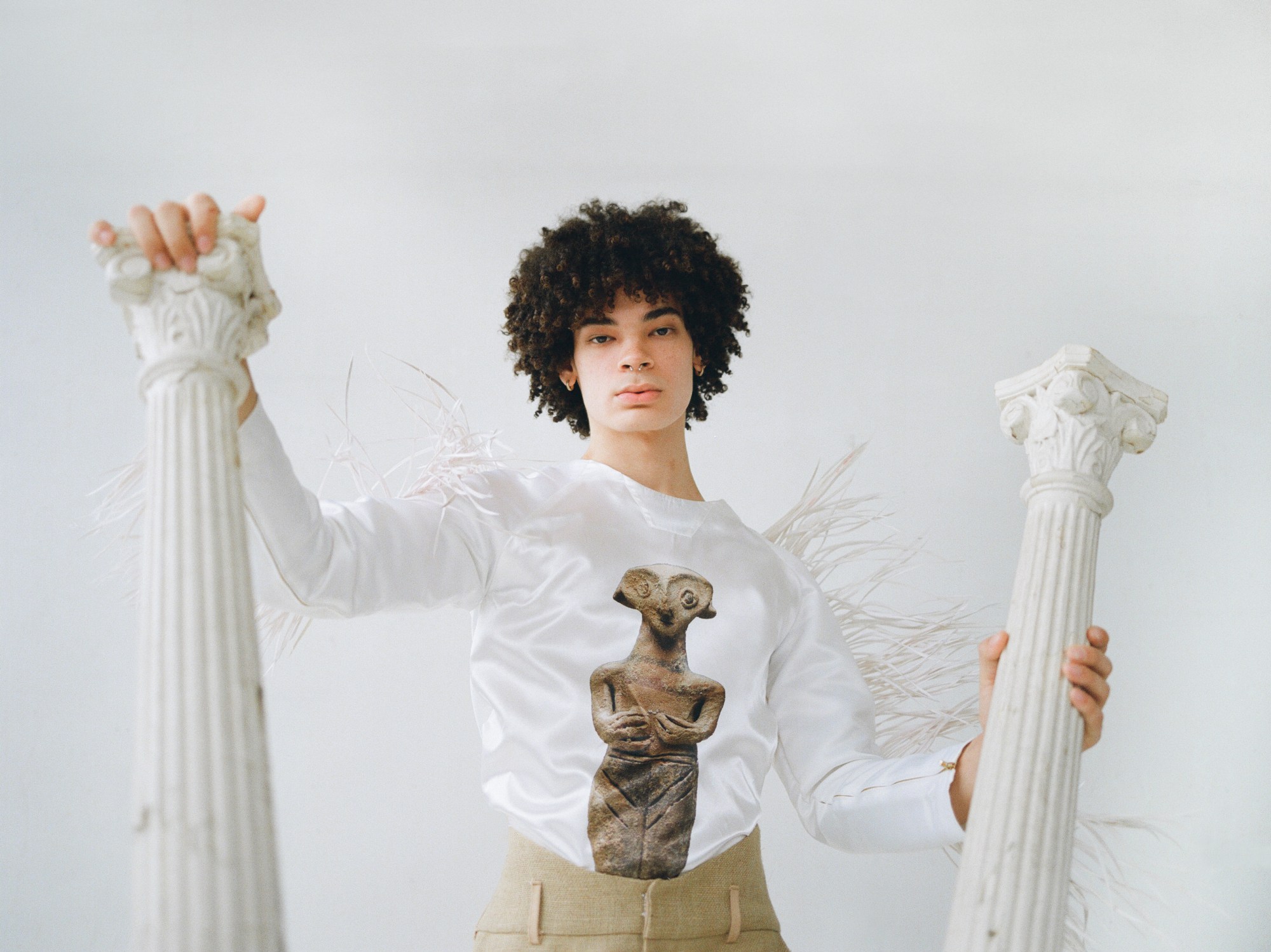 Growing up in Cyprus, Vasilis Loizides loved history and collecting “beautiful little chachkis.” Later, he surprised himself by moving to New York and attending Parson’s, only two months after applying. After cutting his teeth as a designer at Marc Jacobs and Nicopanda, Vasilis launched his own brand fueled by his appreciation of Greek-Cypriot culture, and the love he holds for the New York City queer community. Vasilis sat down with i-D a week before his fall/winter 19 presentation to talk ancient artifacts, commercial viability, and the afterlife.