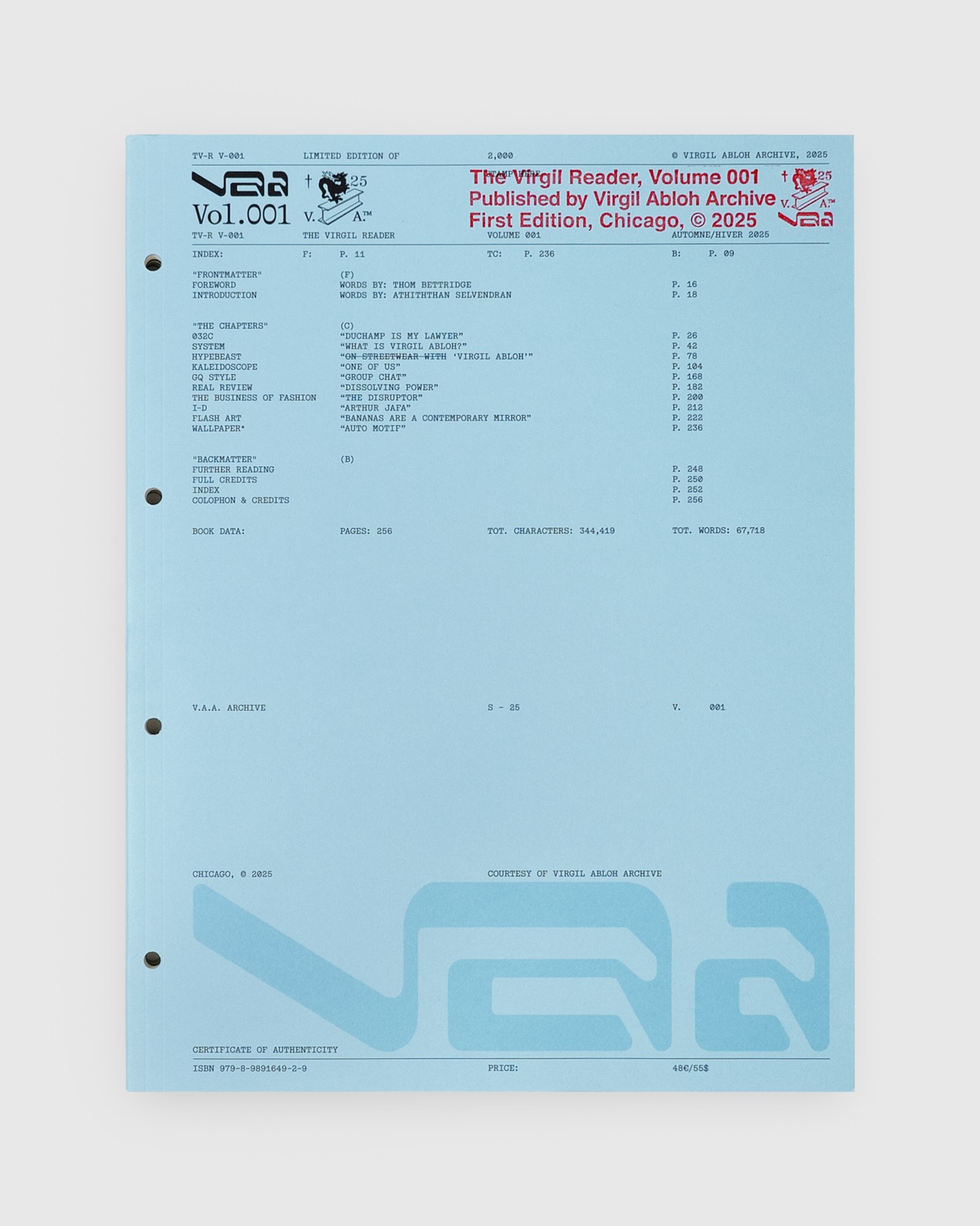 Last year, I had the honor of writing the foreword for The Virgil Abloh Reader: Volume 001, a compendium of the late designer’s interviews, scanned and reprinted in the style of a university course reader. The book was released alongside Abloh’s major career retrospective at the Grand Palais last October and sold out instantaneously.