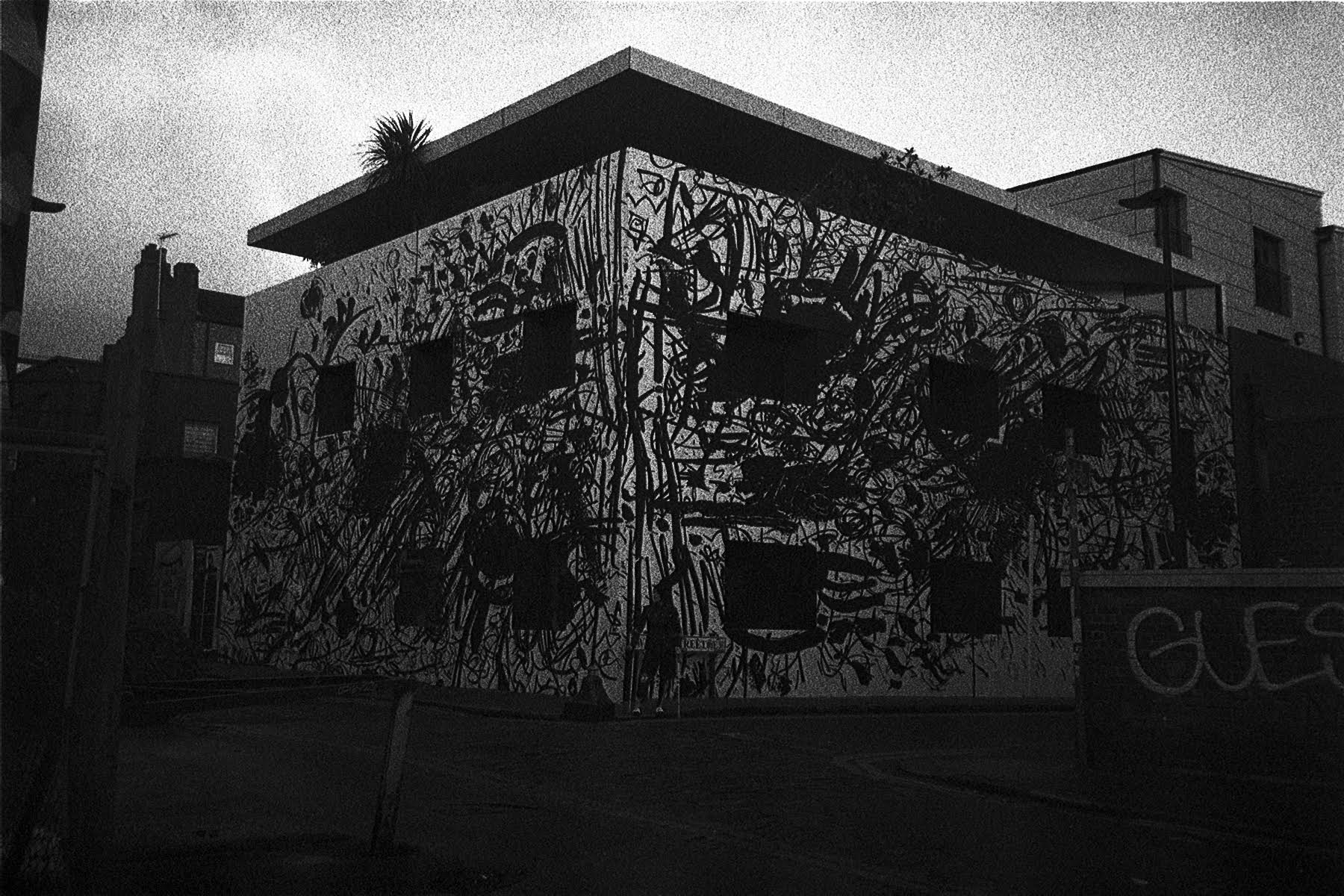 But now the house, once the backdrop for a million selfies per day and 300 photoshoots per year, is no longer a black void on Chance Street. Last month, after selling it, in a pique of semi-spontaneous behaviour, Sue painted the whole thing gloss white then had one of her free-styled Chaos Paintings put over the top. “I’ve been reading a lot of Charles Bukowski poetry, and it’s just like, if you’re going to do it go all the way. If you’re not going to go all the way don’t even start on something. And I just thought it was a great metaphor for everything that was happening at that moment in time. So I did it.”