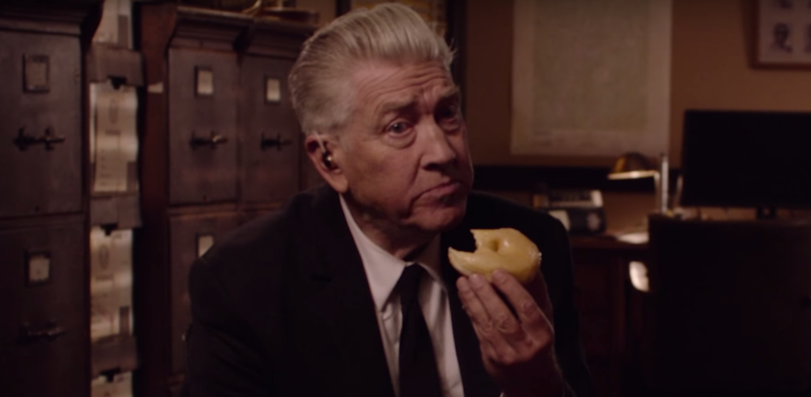 David Lynch has a thing for donuts. While for many years he seemed to subsist largely on chocolate milkshakes (which he consumed daily at 2:30pm exactly, in a silver goblet), he has been known to accessorize his coffee with the occasional baked treat. He also likes to use the donut as a handy metaphor for creative focus. In a 2015 interview with Eyes on Cinema, he offers this cryptic life advice: “There’s the donut and there’s the hole. And you should keep your eye on the donut. All the other things that go on, they don’t matter.” Later, he adds darkly, “The hole is so deep and so bad. The donut is a beautiful thing.”