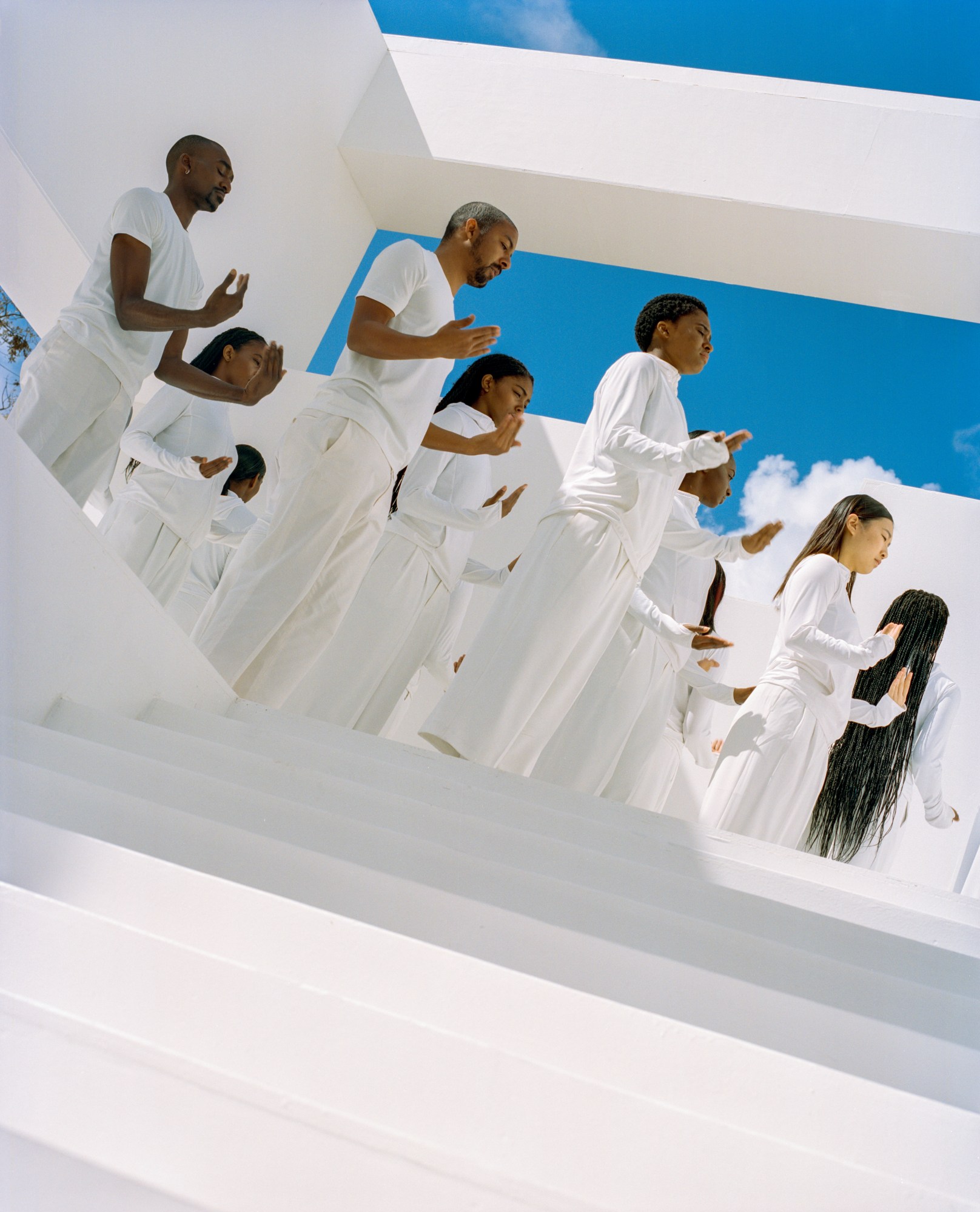 The sculpture was unveiled with a performance piece, Metatronia, that you can watch over on Hammer’s website. In the video of the performance, dancers clad in matching outfits (presumably from Uniqlo) incorporate the cube into a sequence of mesmerizing synchronized movements. “Metatronia explores the process, and mapping of creation,” Solange said of the video. “The piece is an exercise on following the intuitive force that guides us, helping us to create space, and silence the mind to create the work.”