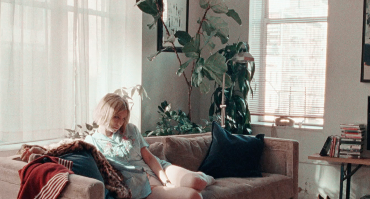 While Cecile remains at home — occasionally peeking through her pink blinds, attempting to get dressed, and obsessively Googling images of herpes as a cold sore quickly worsens on her lip — her phone becomes a lifeline to the outside world. She calls a friend playing tennis, another friend (played by JD Samson) mid-massage, and a friend at dinner time (three times at which receiving a phone call is not convenient). The purpose of her calls oscillates between worrying about her ex-boyfriend’s return, worrying about worrying, and attempting to convince herself that she is not worried.