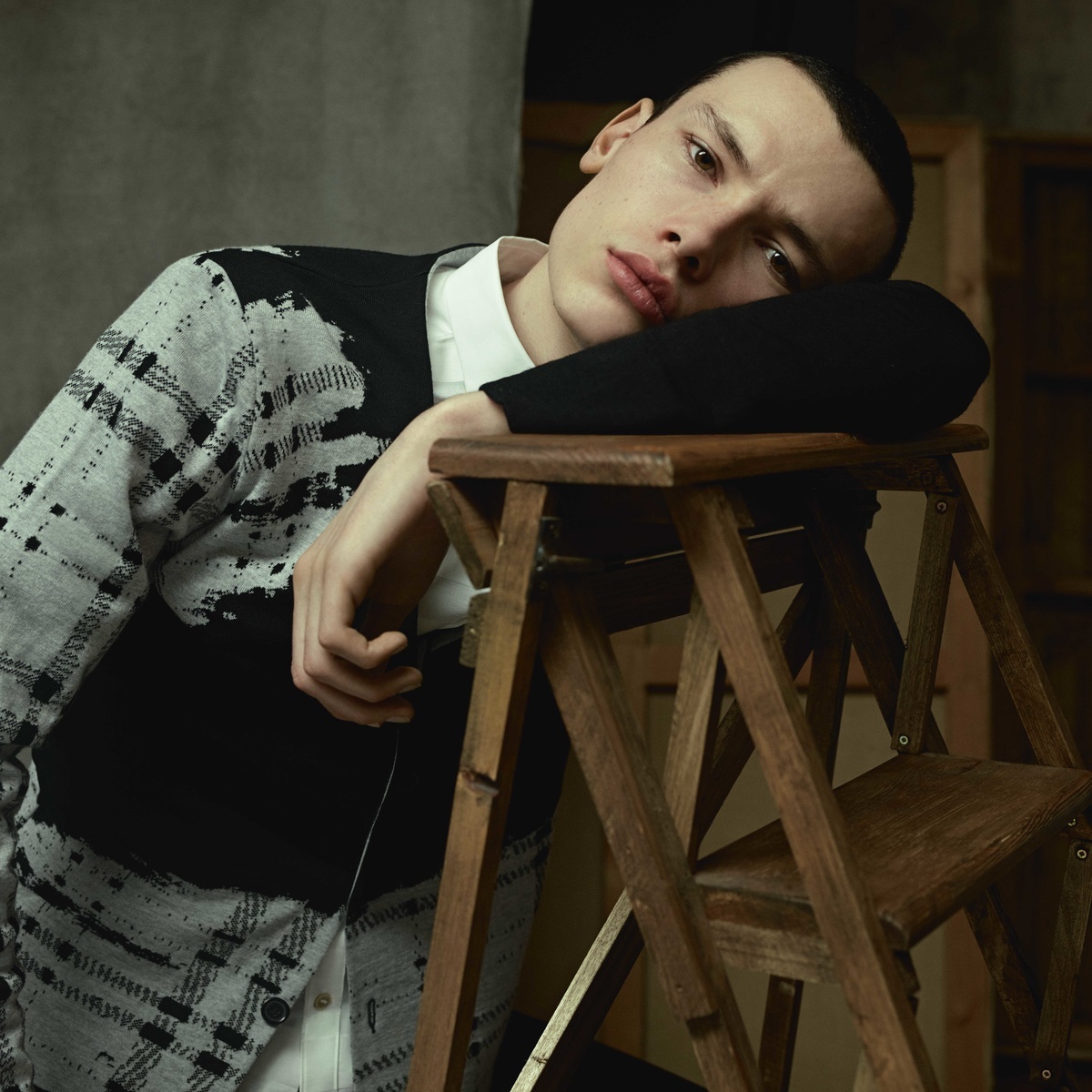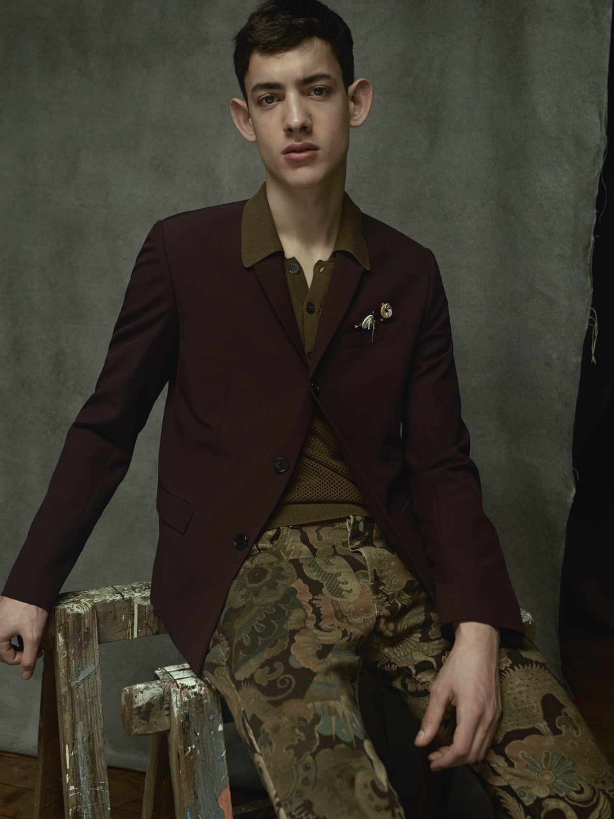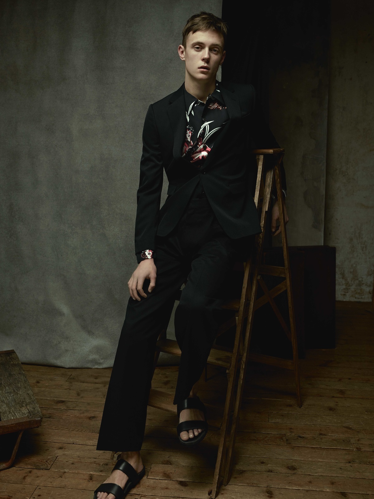Francois draagt shirt en broek Louis Vuitton. Shirt (onder kleding gedragen) Lanvin. Robbie draagt shirt en broek Prada. Hoed Pigalle.