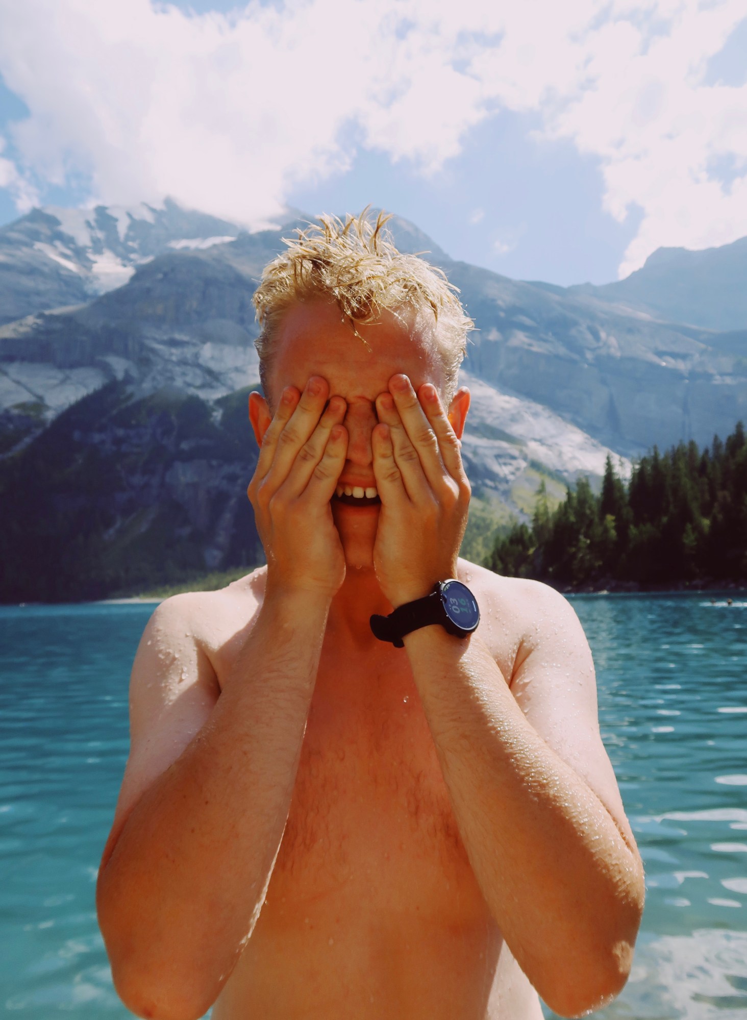 “Swimming in glacier lakes within the mountains on our trip around Europe. The water was heavenly.” @laurengaiaphotos