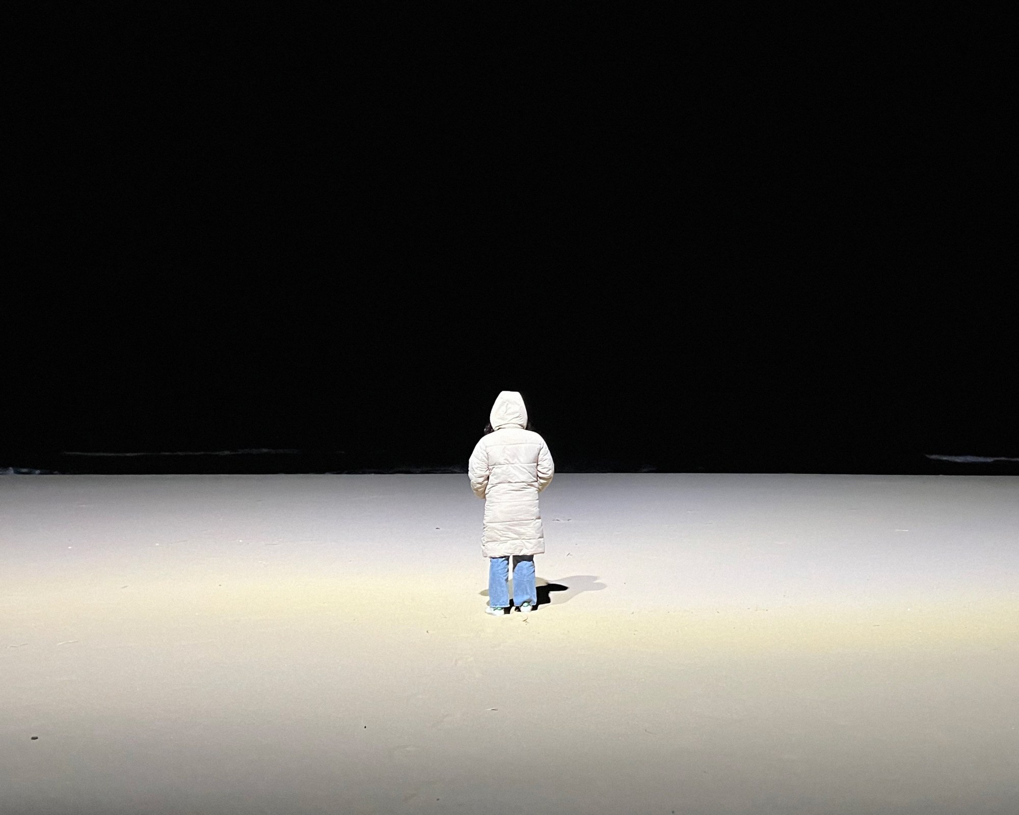 “For the Lunar New Year, we went to see the ocean. During the night, with the big spotlight and the freezing wind on the beach, it was like walking on the moon or on a cheese planet.” @tbebener