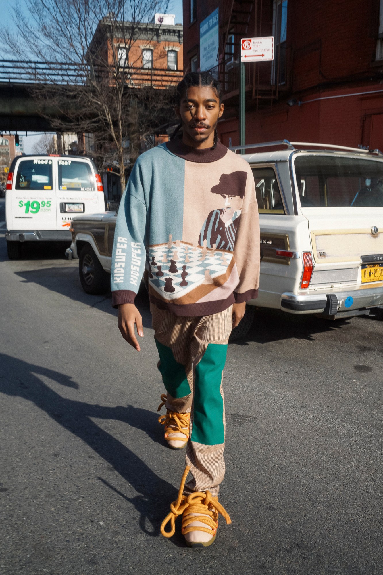 “I went to Supreme at the age of 13, they just were so foolish towards me when I was there to potentially purchase a shirt,” he told the Council of Fashion Designers in 2022. “So, I thought, would it be cool if I created a brand that made you feel cool and inspired you to be great?” he continued. It was this thinking and distaste for exclusivity that led him to found KidSuper, a brand that acts like a super suit for its wearers, inviting them into his crew, rather than a queue.