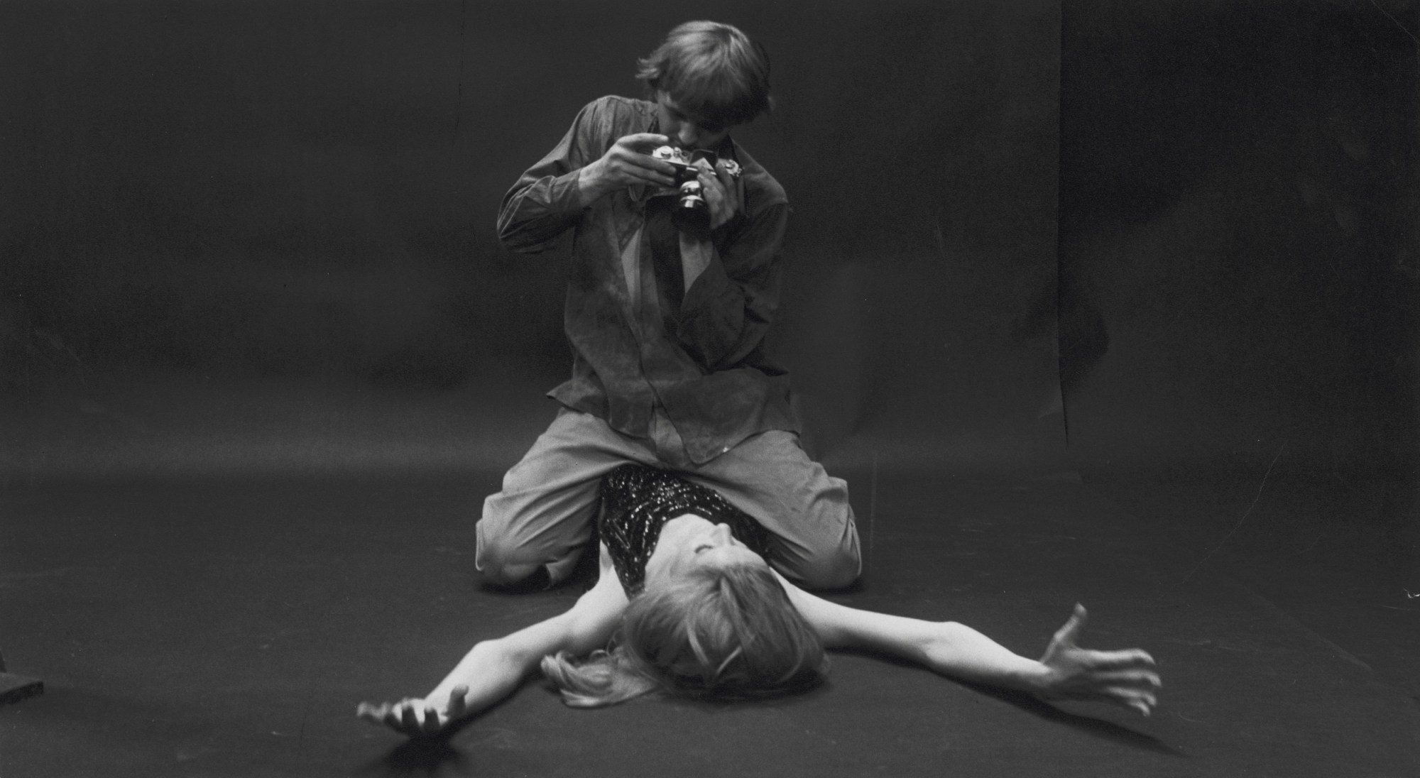 There he shoots Veruschka in the most intense fashion photography session ever (It’s total mental sex.). He photographs a bunch of extraordinary-looking pop art girls including the famous Peggy Moffitt. He then has a stoned three-way casting couch session with two wannabe models who get naked, a 20 year-old Jane Birkin and 21 year-old Gillian Hills, wrestling in torn seamless paper.