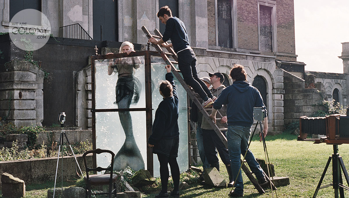 Fall down the rabbit hole and enter into the wonderful world of legendary photographer Tim Walker, where silver-haired mermaids swim in tanks and a lonely artist mourns his muse. A place where time stops and dreaming begins, Tim’s latest poetic offering is a ten minute short starring Ben Wishaw as the grieving artist and Kristen McMenamy as his underwater muse. Inspired by the mermaid stills he took of Kristen for W Magazine, (she’d always wanted to be one and Tim had always wanted to shoot one); Tim brings the fairy tale alive in this captivating short. As The Muse is released exclusively on We Are Colony, we catch up with Ben and Tim.