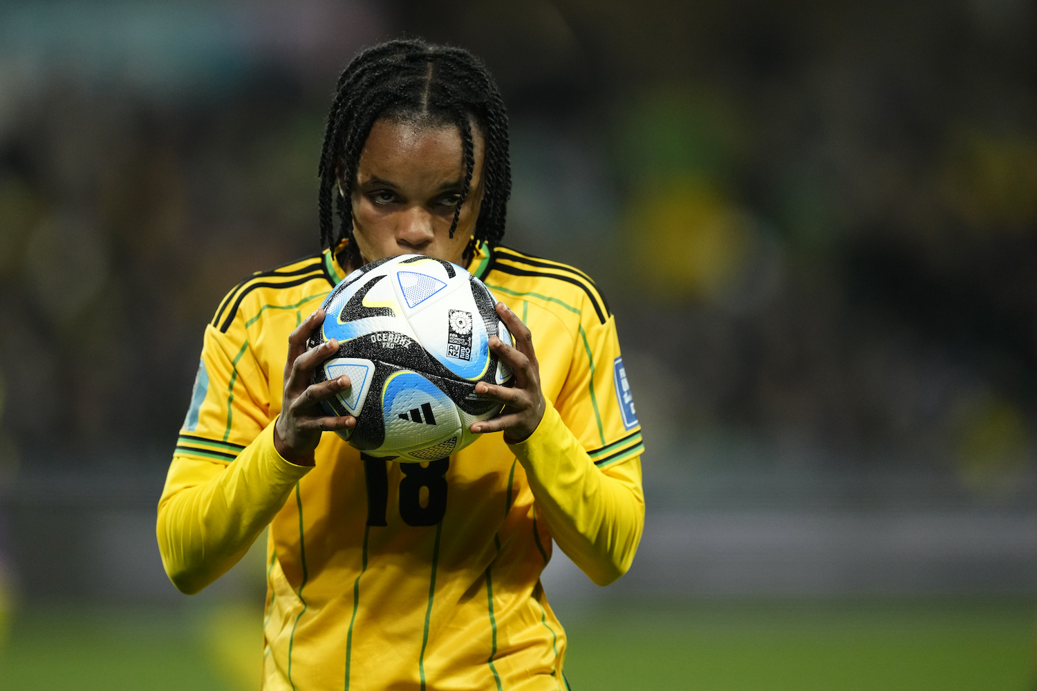 Though the world of fashion has long been watching women’s football from the sidelines (perhaps as far back as 1987 when Jean-Paul Gaultier sent a football-sleeved bomber jacket down the runway), it wasn’t until this World Cup that it finally took centerfield. Brands like Prada, who dressed China’s women’s team off-field, saw an untapped consumer sector; at the other end of the market, Kim Kardashian sent the vintage football shirt market into a flap after stepping out in L.A. donning a 1998 Roma team jersey. When Adidas enlisted Wales Bonner to design Jamaica’s Reggae Girlz’s kits (which was soft-launched during her AW23 show), football attire suddenly became this summer’s style trophy.