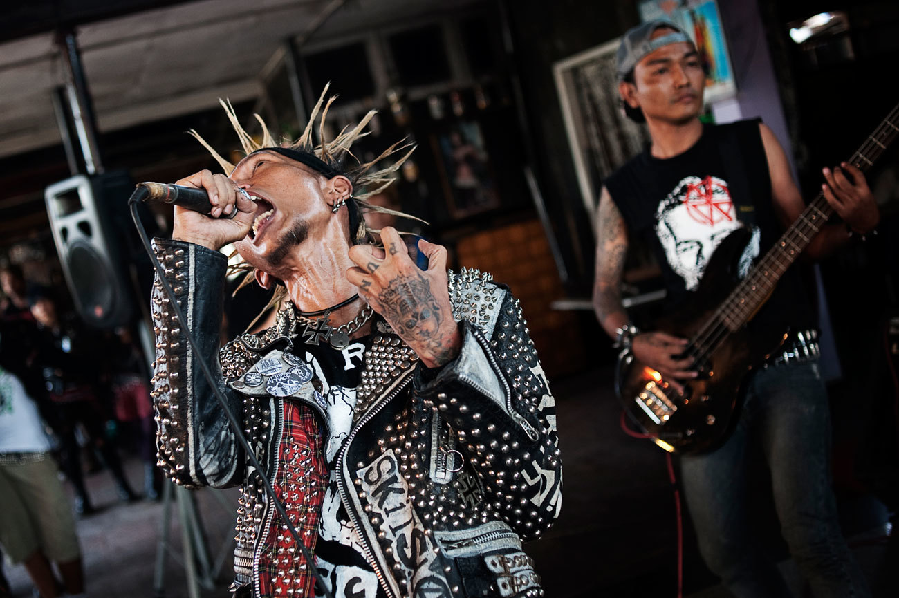 It’s still quite tricky. On the one hand you have a political situation where all kinds of gatherings and demonstrations and public performances are very restricted, you always need permission and if you’re a punk you will never get permission. So they have to meet at rundown warehouses and put on their shows illegally. And the society in general is very conservative, very traditional, very Buddhist, and in such a society being a punk is really difficult.