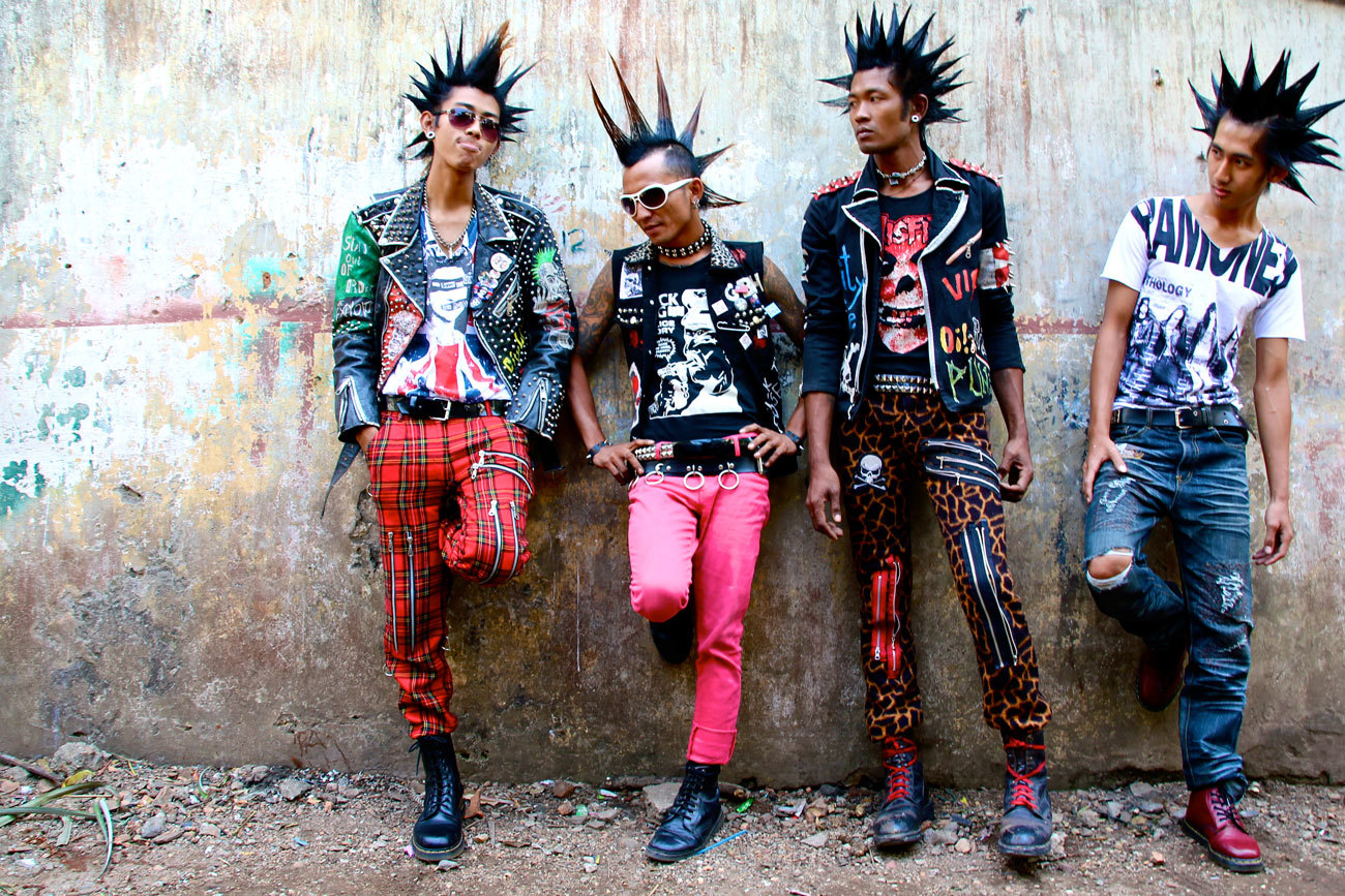 So it’s heartening to see that in some places it’s revolutionary energy and anti-everything anger still burns strong. Because in Burma, an ex-British Colony that’d been ruled as a Military Dictatorship for 50 years until 2011, punk rock has been challenging the status quo or a conservative nation once more. A deeply religious and conformist society, where fashion and music are largely limited to traditional Buddhist forms, and where the temple is the heart of life, a group of punks have been standing up for democracy and speaking out against human rights abuses and for freedom. Punk didn’t make its way to the country until the 90s, and the scene didn’t really exist until after the government crackdown on the Saffron Revolution in 2007, in which hundreds of unarmed protestors were killed by the military, the punks aligned themselves with Aung San Suu Kyi’s movement for reform, and, influenced by UK and US punk bands like The Clash, Sex Pistols and The Ramones, began crafting punk’s nihilistic revolutionary message towards the political situation in Burma.