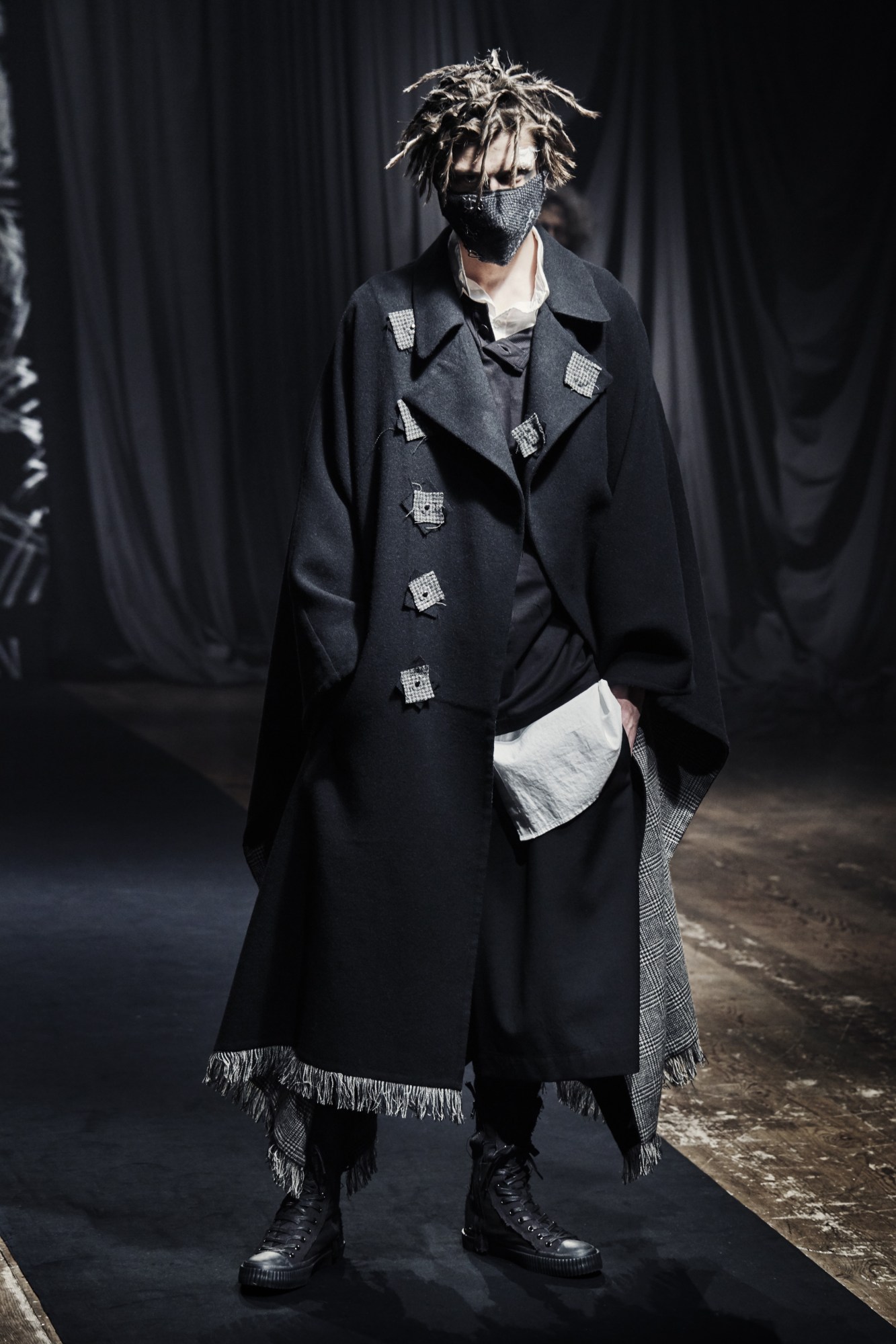 Rather than pass judgment or take sides, though, Yohji-san took this season as an opportunity to simply observe and project his vision of how he sees the world right now. In keeping with the vision he’s spent four decades honing, as well as with the mournful mood of the times, the collection’s dominant hue was his signature inky shade of black.