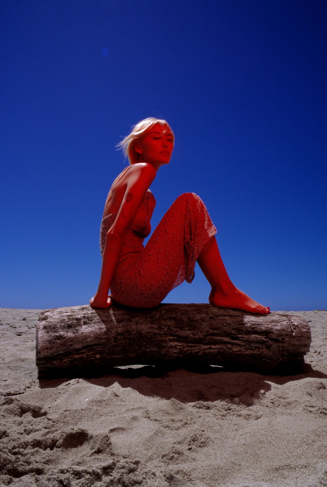 The series’ main sources of inspiration came from vintage Interview Magazine copies and the work of Elaine Constantine. There are other references, like the flashy, in-your-face documentary-type photography from Martin Parr, with hints of colour-pop editorial superstars like David LaChapelle. And though the vibes and visuals stand on the shoulders of y2k antecedents, they exude a distinctively Gen Z excellence, which is to say belonging to both the past and future. Even the book’s cover and branding — vintage cursive, heart exclamation, red-white-and-blue Americana — is a direct reference to a 1960s toy doll, “Tressy.”