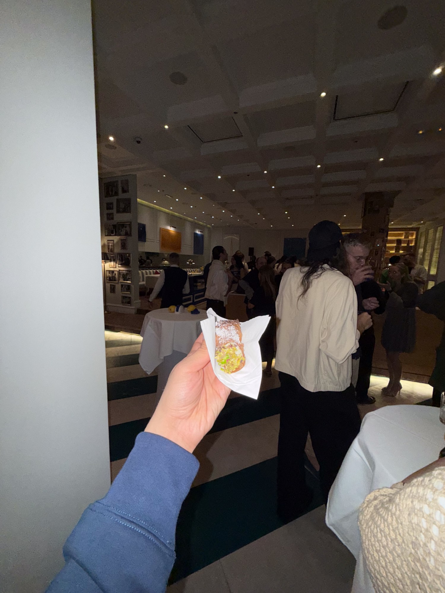 That evening we had a dînatoire—a chic word I took to mean “light food, light dress code.” I showed up in a Marc Jacobs Heaven hoodie covered with teddy bears and the word “Hardcore” across my chest. Everyone else looked like they’d been styled by Roman emperors. The head of Dubai Tourism made a beautiful speech. So did the Zegna team. I stood by the canapé station inhaling bite-sized lasagnas, saffron risotto, and tiramisu cups like I was on a cooking show with no judges. It was exquisite. I went to bed full of carbs.