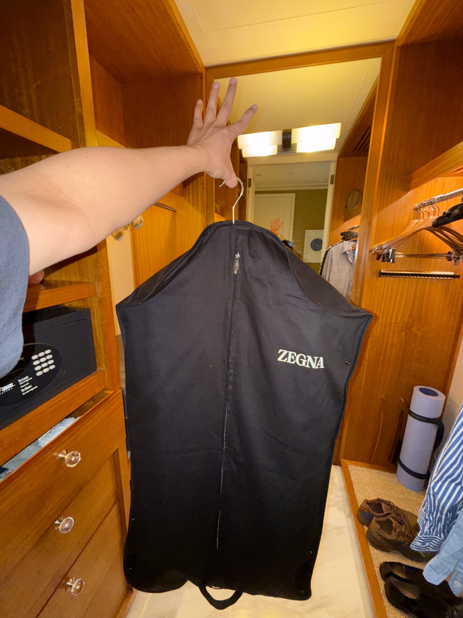 Back at the hotel, my Zegna look was still MIA. So I swam. I baked in the sun. I ordered room service—fettuccine Alfredo, criminally good. And then, finally, it arrived: a rich chocolate brown wool two-piece—oversized pants and a matching jacket with just the right amount of drop. There was also an experimental vest, which I vetoed immediately (sorry). Instead, I paired the suit with my Cowboys of Habit tee and brown Asics. Suddenly, I felt like a post-minimalist poet who makes his own vermouth.