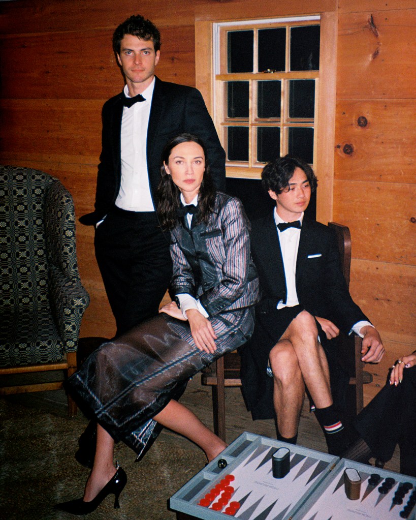 Thom Browne hosts a wintery dinner party upstate. His new high winter collection launches today with a campaign sporting immaculately attired friends and family upstate at Stissing House.